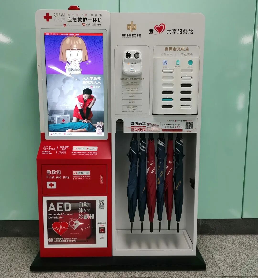 3月初,中國紅十字基金會“滴滴應(yīng)急救援項目”鄭州地鐵應(yīng)急救護(hù)一體機(jī)暨數(shù)字化應(yīng)急救護(hù)體系啟用,首批276臺“應(yīng)急救護(hù)一體機(jī)”在鄭州地鐵車站內(nèi)安裝完畢,實現(xiàn)既有運(yùn)營車站站廳、站臺層全覆蓋,有效提高了公共場所現(xiàn)場施救的應(yīng)急效率和救護(hù)能力。